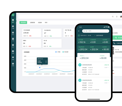 商家PC+移动管理端 移动互联网时代,仅PC端管理后台已经不能 满足商家需求,云井星辰SSSSCRM系统提 供商家移动管理后台,与PC端数据同步处理, 拿起手机即可随时随地轻松管理店铺。